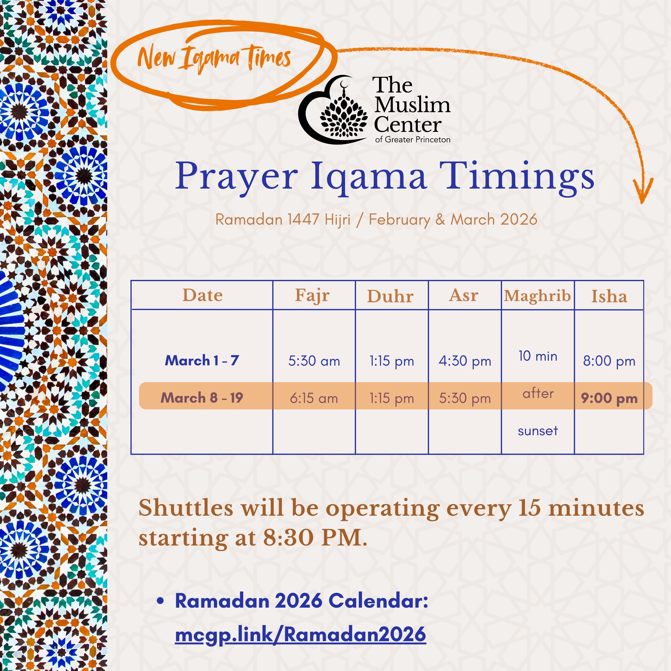 We look forward to welcoming you and your family to MCGP this Ramadan!